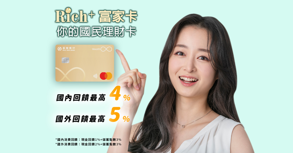 【華南Rich+富家卡】最高國內4%國外5%+新戶贈688!